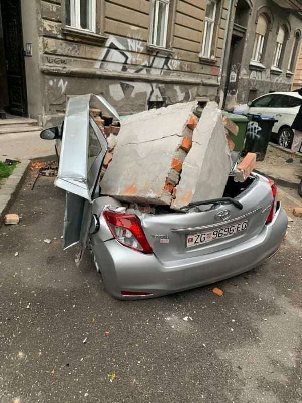 Iconic Zagreb Cathedral is seriously damaged with the top of one of its two spires collapsing. Many buildings cracked, walls and rooftops are damaged and downtown streets are littered with debris. Concrete slabs fell on cars and completely destroyed some of them. There were also several fires reported while the electricity in some parts of the city has temporarily been cut off. Residents are currently sharing photos of belongings falling off shelves, broken bottles and glass inside their homes, destroyed cars and buildings.