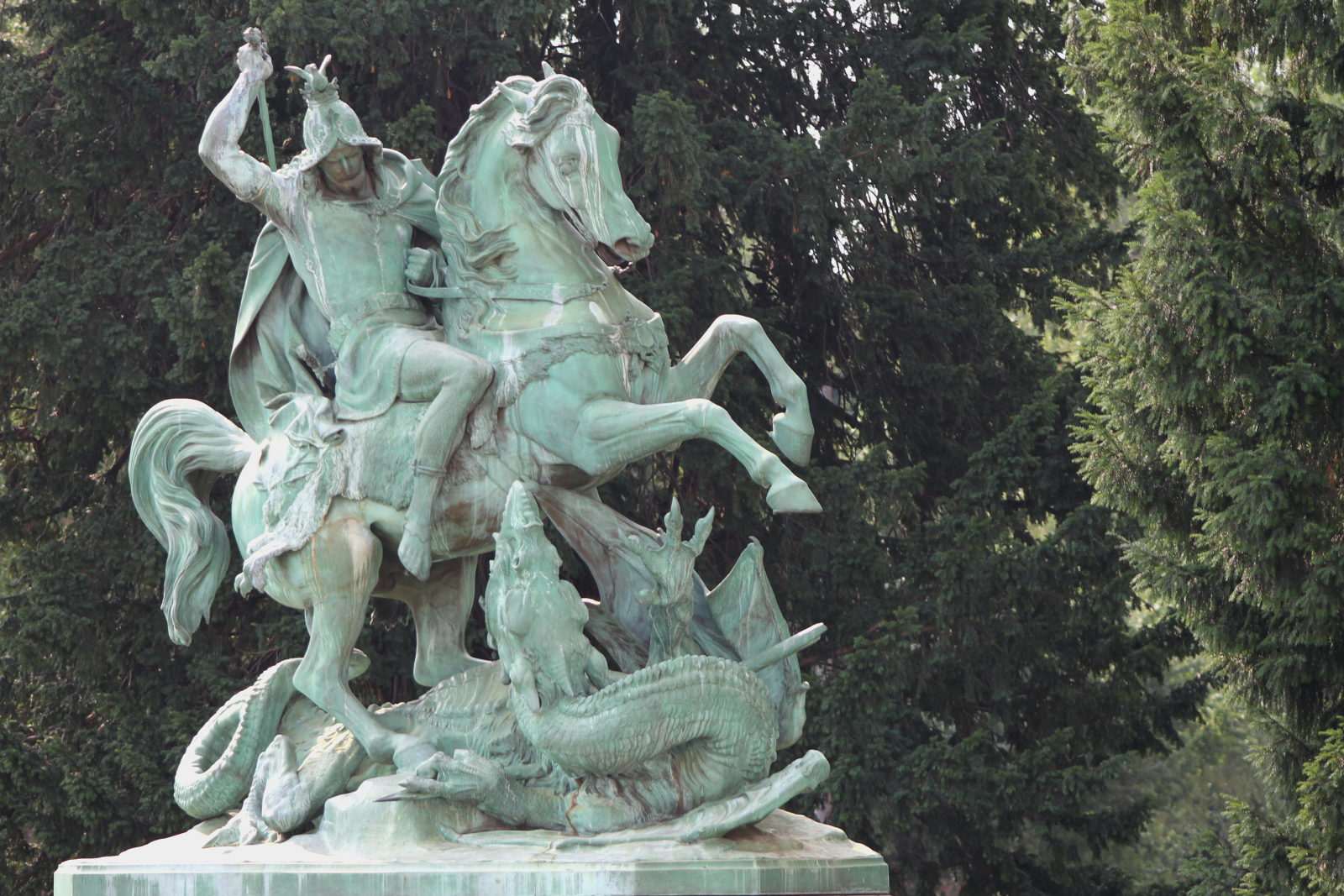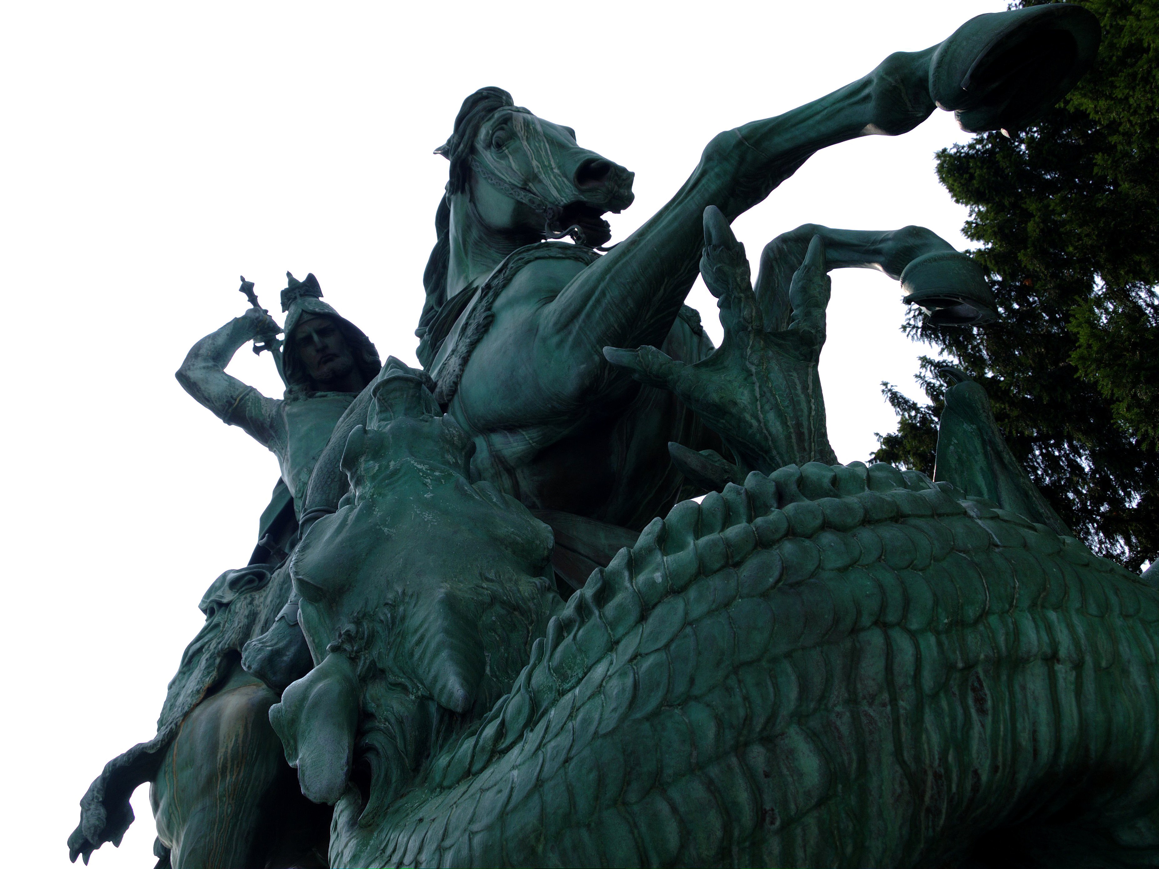 That story is what is considered an honest, if somewhat broad, a recount of his life. But that’s not the story that captivates the imagination of so many artists, sculptors and appreciators. It’s the dragon slaying bit. Saint George is the first one of princess rescuing, dragon-slaying knights on a white horse from western legends. The recount as we know it is mostly taken from Golden Legend by Jacobus de Voragine, a medieval collection of embellished stories on the life of saints, but the story was told in a form of chivalric romance on European courts way before that.
