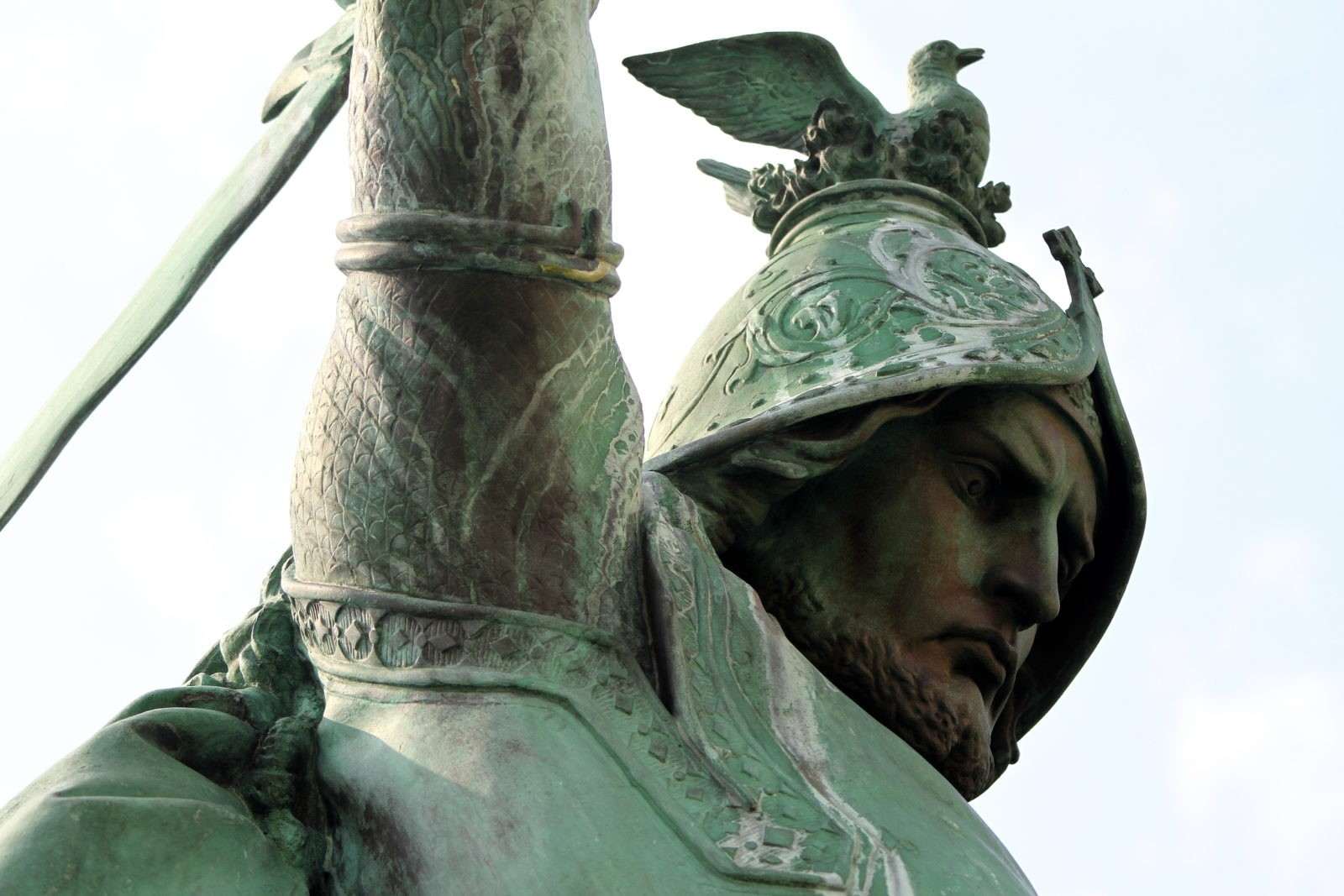The second statue of St. George differs a lot from its older counterpart. While most statues depict the saint in the midst of battle, this one shows George moments after the dragon has been slain. He is depicted in a meditative state, sitting on his horse, dead monster beneath its legs. It was sculpted in 1906 by sculptors Winder and Kompatscher and has two parts. The saint is cast in bronze while the dragon is sculpted from the finest red breccia stone.