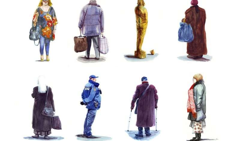 Stipan Tadic on the other hand, cares for fashion the way artists tend to- not much. More fascinated by the everyday, he has been watercolor painting random citizens for the last two years. Postal workers, police officers, bums, nuns, beggars, students, street performers, green market sellers…Tadic’s selection of street fashion is more defined by the regular than outstanding, picking his subjects on train stations, squares and streets far away from the trendy promenades of the city.