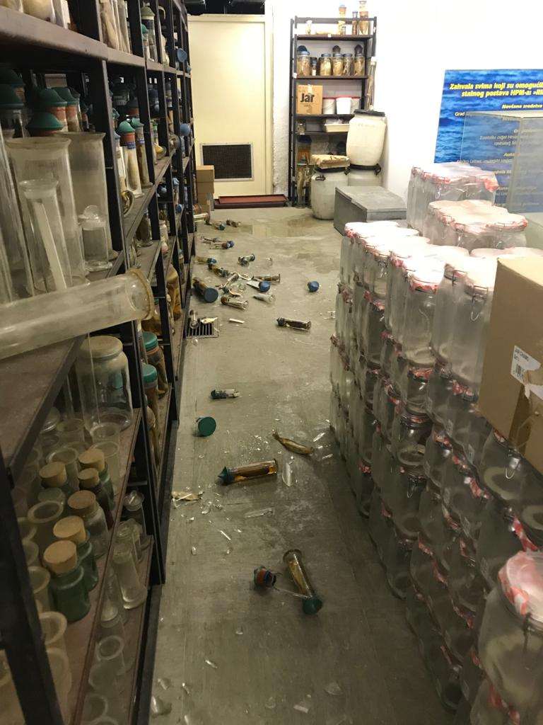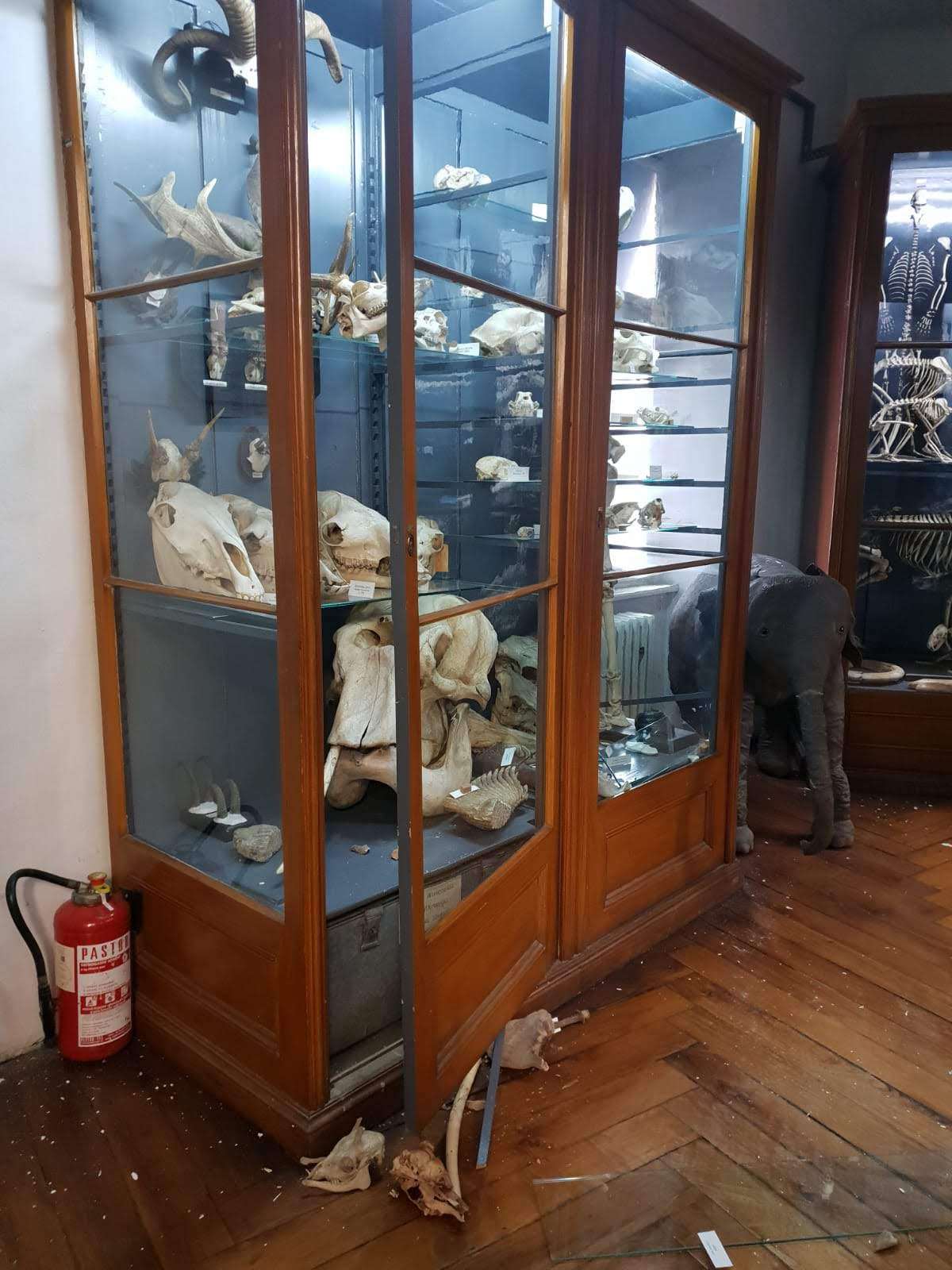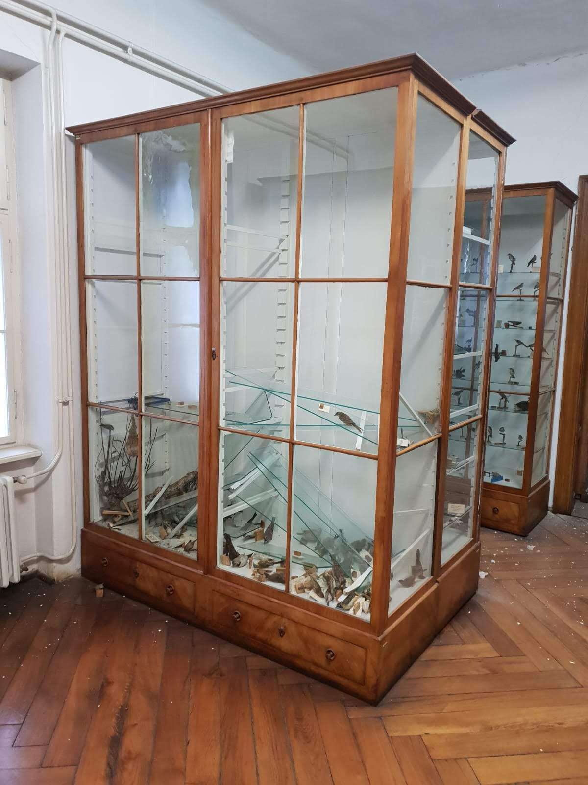 The building of the Croatian Natural History Museum was also marked as temporarily unusable. Vertical cracks are visible on the exterior walls of the Museum atrium, and heavy damage to the first and second floors of the building will need to be bolstered by struts. The permanent display is badly damaged, glass was broken on numerous display cases and a number of invertebrate glass cylinders were irreversibly destroyed. A detailed inspection of over one million museum objects will take months. Only the most urgent evacuation will require around 600 square meters of space outside the Amadeo Palace.