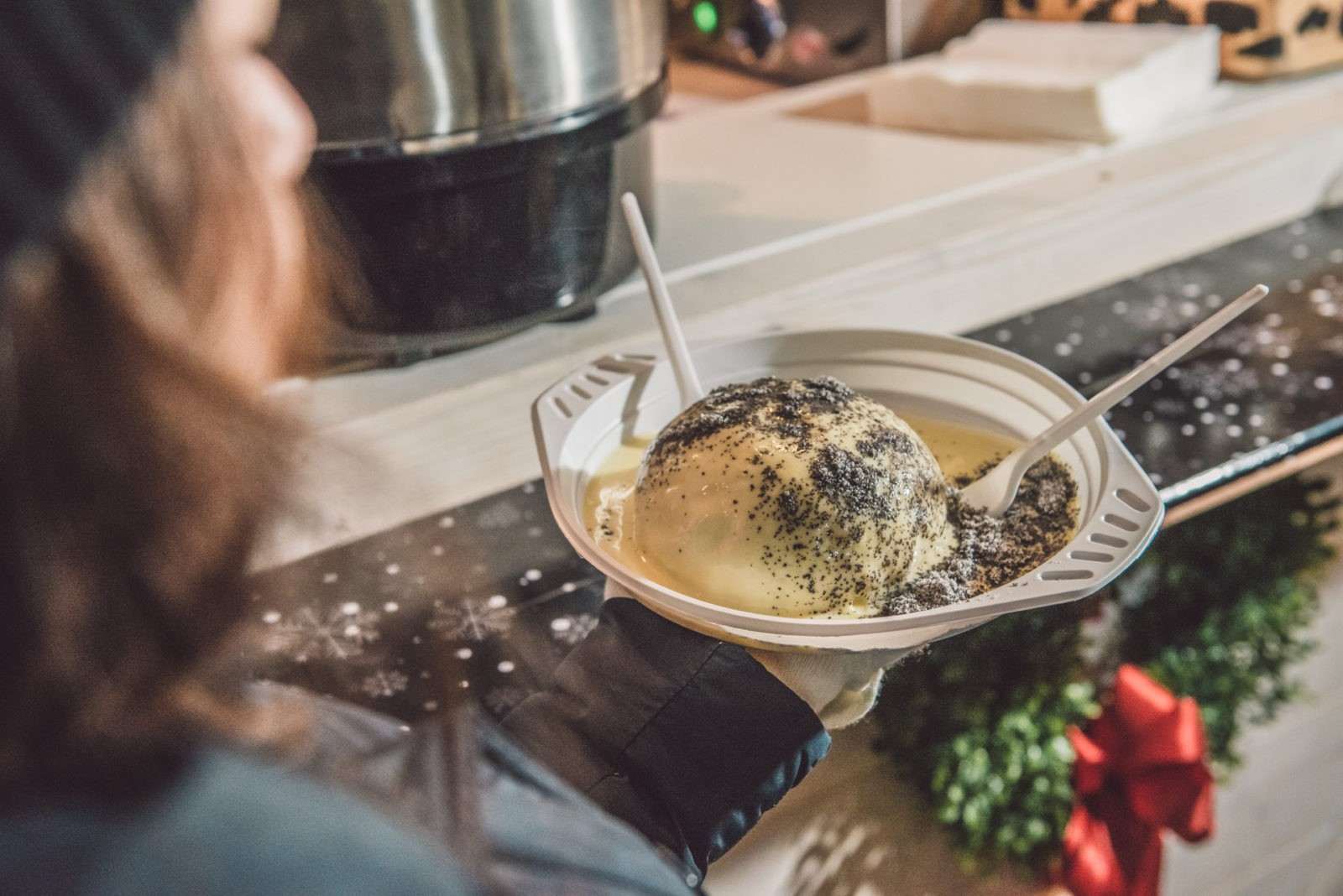 After sausages and succulent sandwiches, head for pastry stands. Try to find Spizza, a heaven for Germknoedel lovers. These fabulous fluffy plum jam filled beauties swimming in vanilla sauce and poppy seeds are best served with some brandy, tasty rakija and a chat with helpful smiling staff.