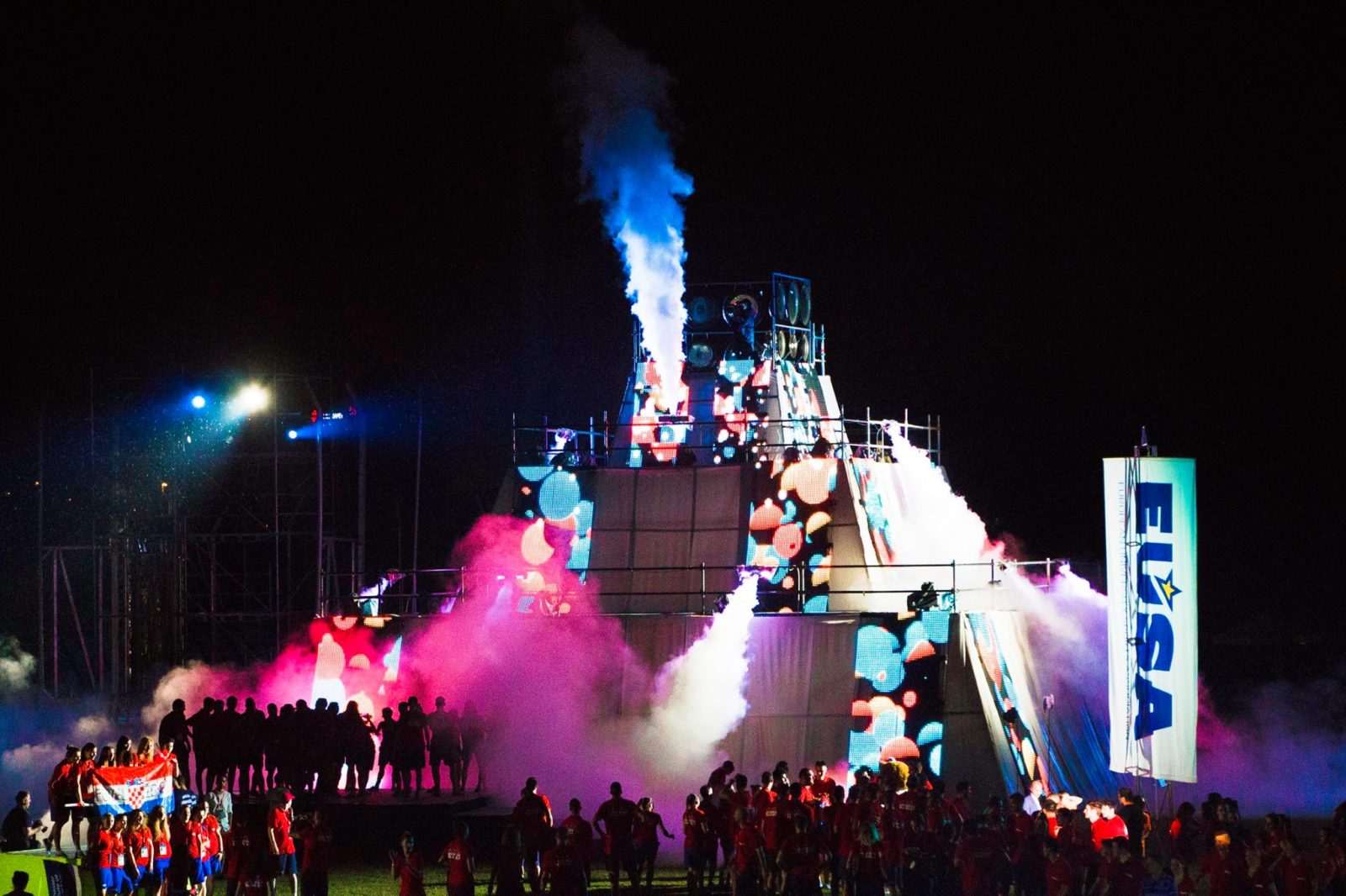 After two cities were presented to the audience, students took over the ceremony in an hour long parade during which they presented every University and country. We saw Portugal, Germany, Iceland, Spain, UK… and many other countries but we learn one more interesting thing. Namely, during the Universiade in Zagreb in 1987 students represented their own countries. This time, at European University Games in Zagreb, students represent their University. It doesn’t matter from which country they are coming from, the most important thing is for which team they play at the moment.