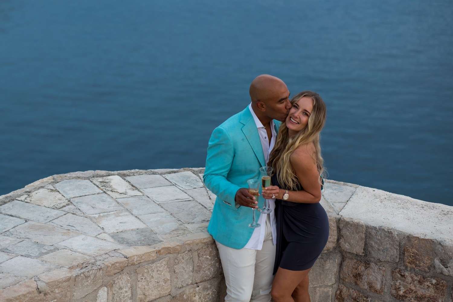 “I’m still very much in shock and just getting used to having the ring on my hand. So, we like to have a date night. We are on a boat with a lot of people, but we still like to take time away just for the two of us. We took the boat over, we got off and we had a tour guide show us a little bit around the Old City. He walked us up to St. Lawrence Fort. And I climbed a bunch of stairs in heels. Once I got to the top, I was just overwhelmed. The view was amazing, he had us a table set up. It totally blew me away! The music was playing some of our favourite songs,” she told us. They sat and chatted about the past and how great it’s been.