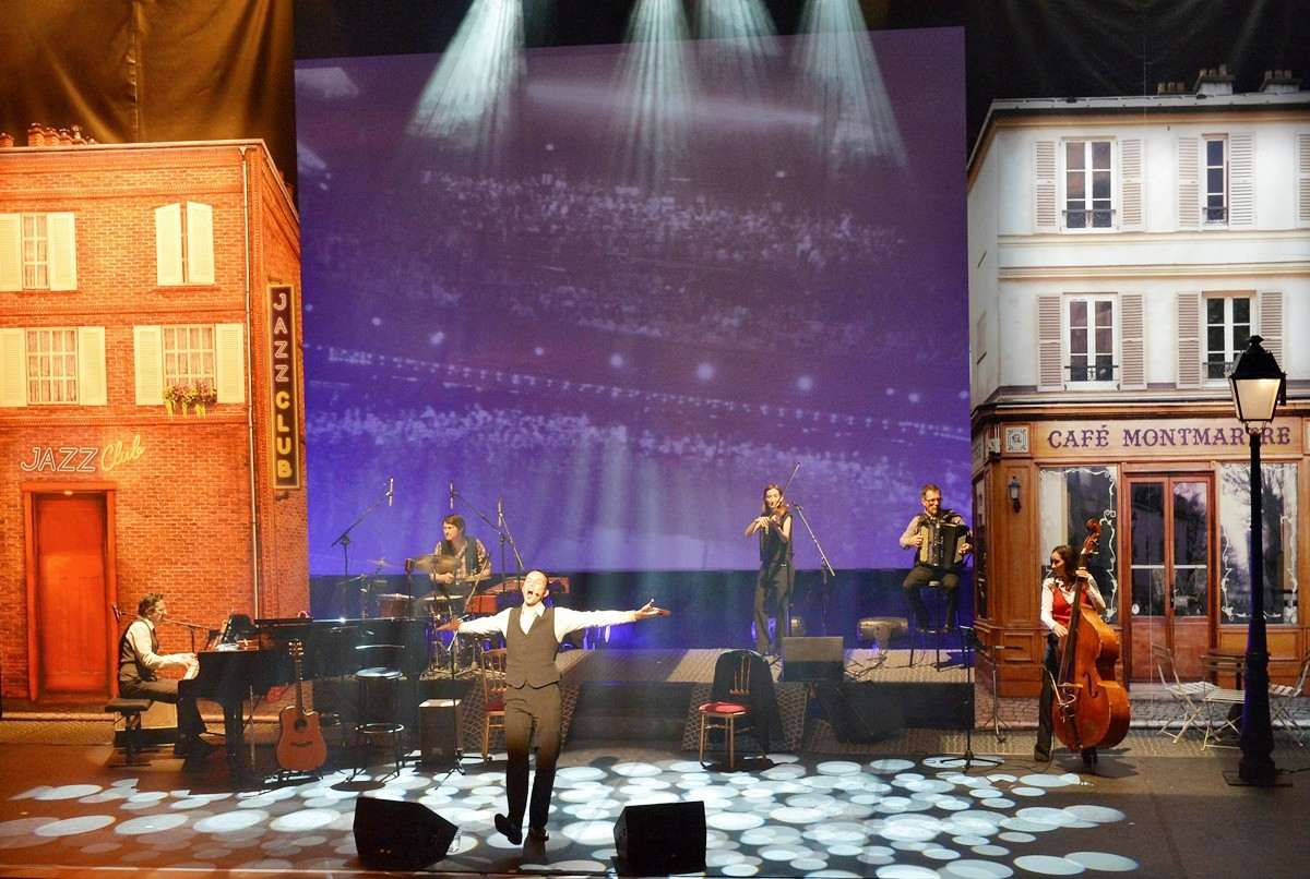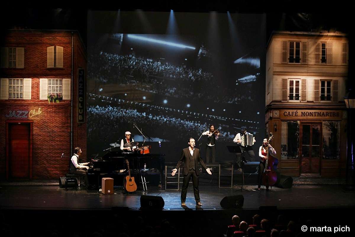 The musical takes us back to the time of “La Bohême” and through his most powerful, memorable and iconic songs, tells us the incredible story of his life. With the help of images and videos projected on the stage back drop, beautifully arranged, original production make this musical one of the most wonderful tribute ever dedicated to the career of the artist Charles Aznavour.