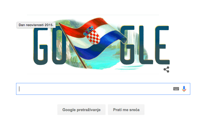 World famous search engine Google, replaced today one of its two letters ‘O’ with a Croatian flag and a picture of Plitvice Lakes. If you ‘click’ on it, the Google Doodle will take you to a page of Croatian Independence Day on Wikipedia.