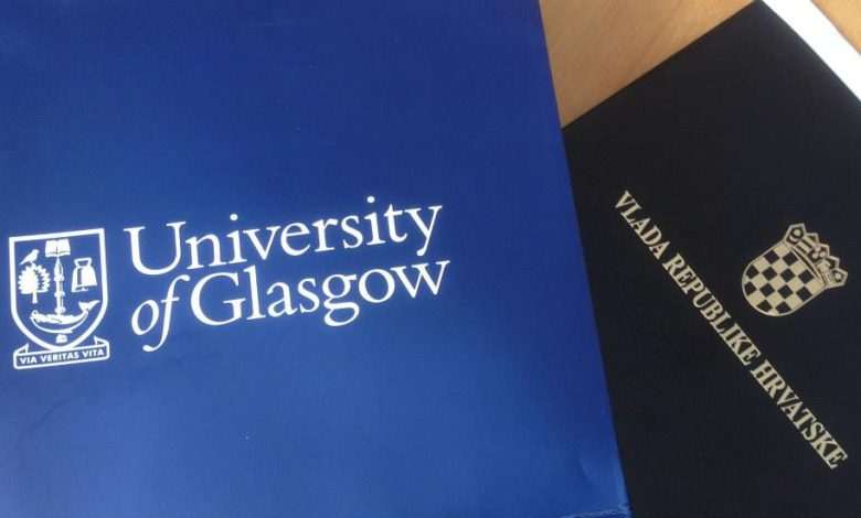 Croatian Ambassador in London, Dr Ivan Grdesic, on behalf of the Ministry of Science, Education and Sport, Republic of Croatia, and Principal and Vice-Chancellor of the University of Glasgow Dr Anton Muscatelli have signed Memorandum of Understanding on introducing elements of Croatian Studies within the Comparative Literature Programme of the School of Modern Languages and Cultures at University of Glasgow. In order to raise interest in Croatian culture, the elements of Croatian Studies will be taught within the framework of the existing Undergraduate Comparative Literature programme, dealing with European culture.