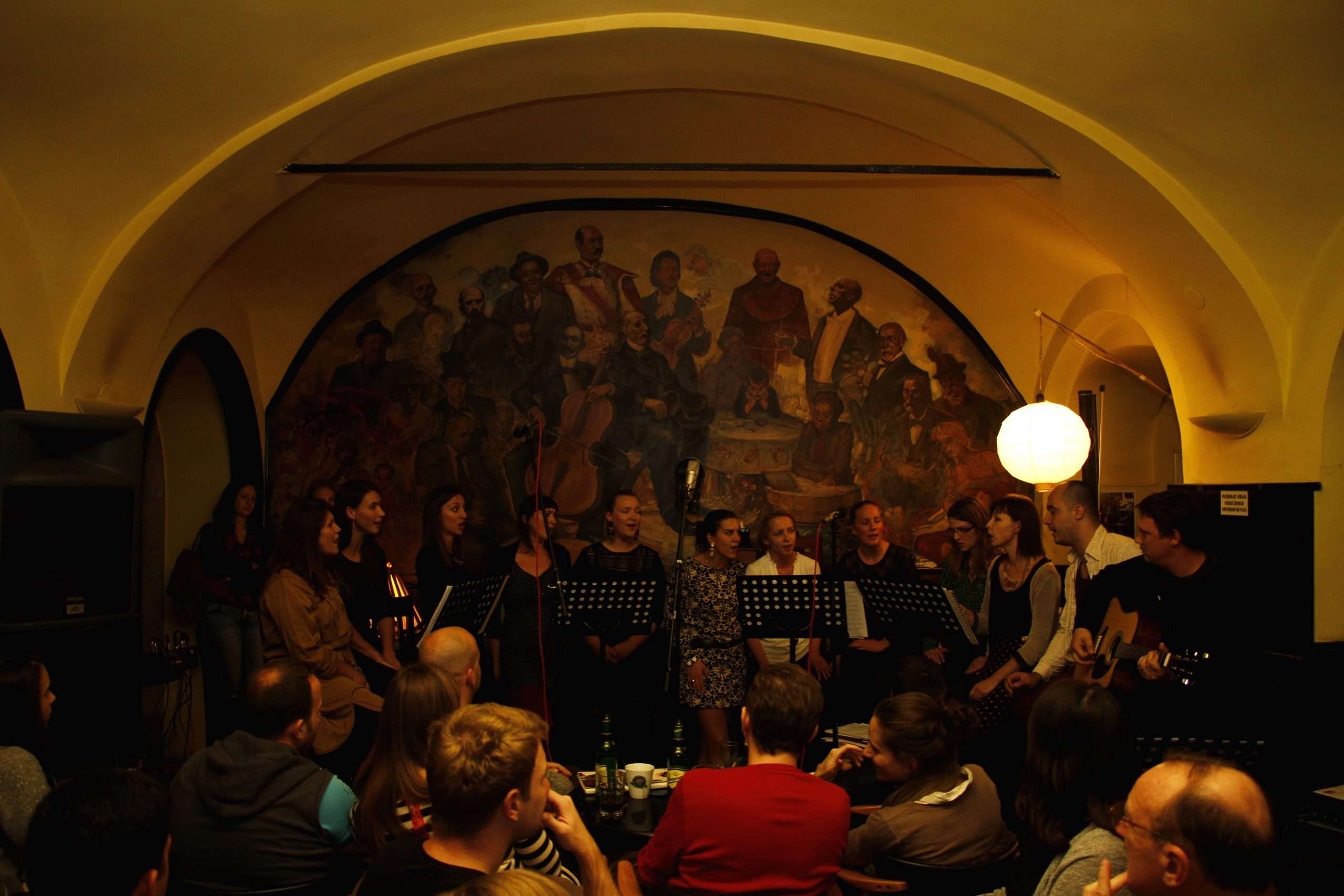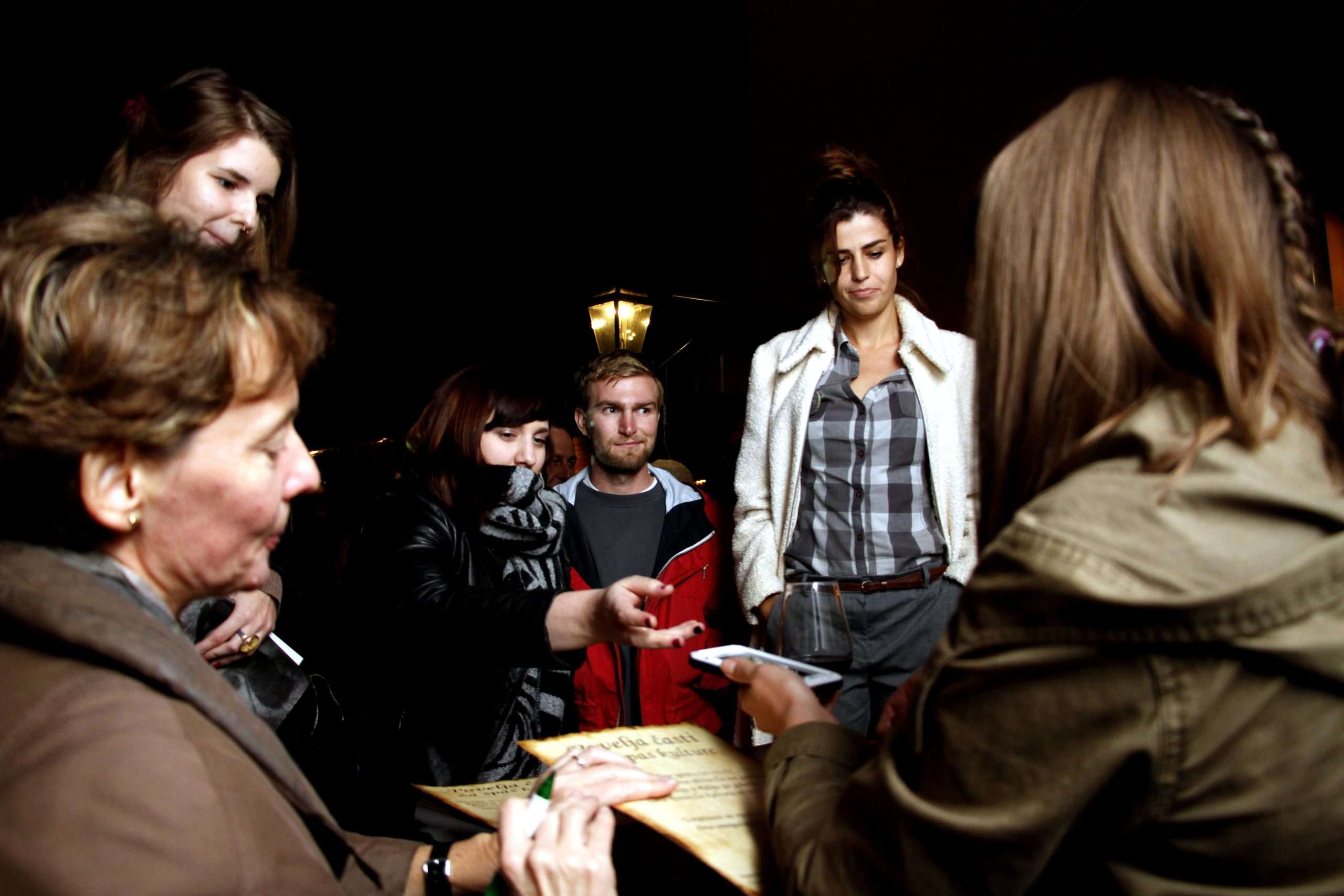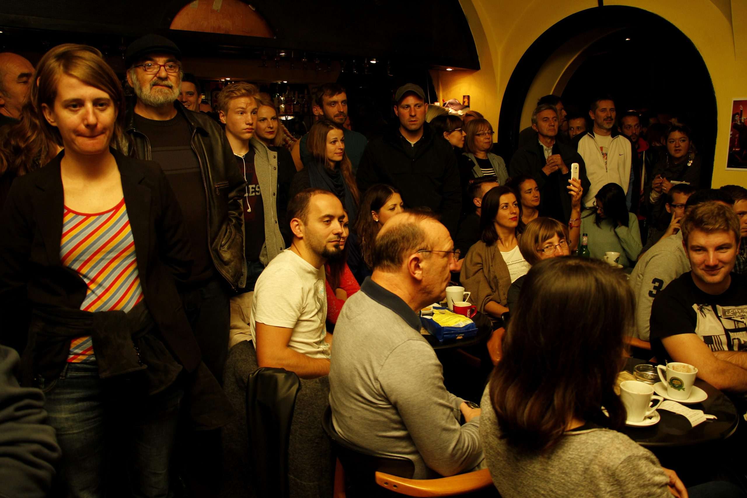 It was a fun night for us. The crisp and calm autumn winds had come to Zagreb and the evenings seem a bit more mysterious as you stroll through yellow lit streets comprised of baroque and neo-goth structures, the galleries providing little pit stops of warmth for the body and the soul. We’ve been to all of them many times, and know the people who surf the culture scene, but the RPG provided us with a novelty of different interaction with people who we’ve met in the race. The competitive note of the race is only formal. Strangers you’ve met in one gallery will share their opinions on the other you are about to visit, gallery owners happily welcoming anyone who enters, even if it is for a minute or so, giving you the rundown of how many people have passed through by then (We were split into two teams, so there really was a harsh competition going on between us. Any info on the other team was welcome.) We’ve regrouped for the concert and the declaration of winners and had a few ‘glasses of conversation’ (it’s a term people in Zagreb use to sound polite) with people we’ve met along the way.