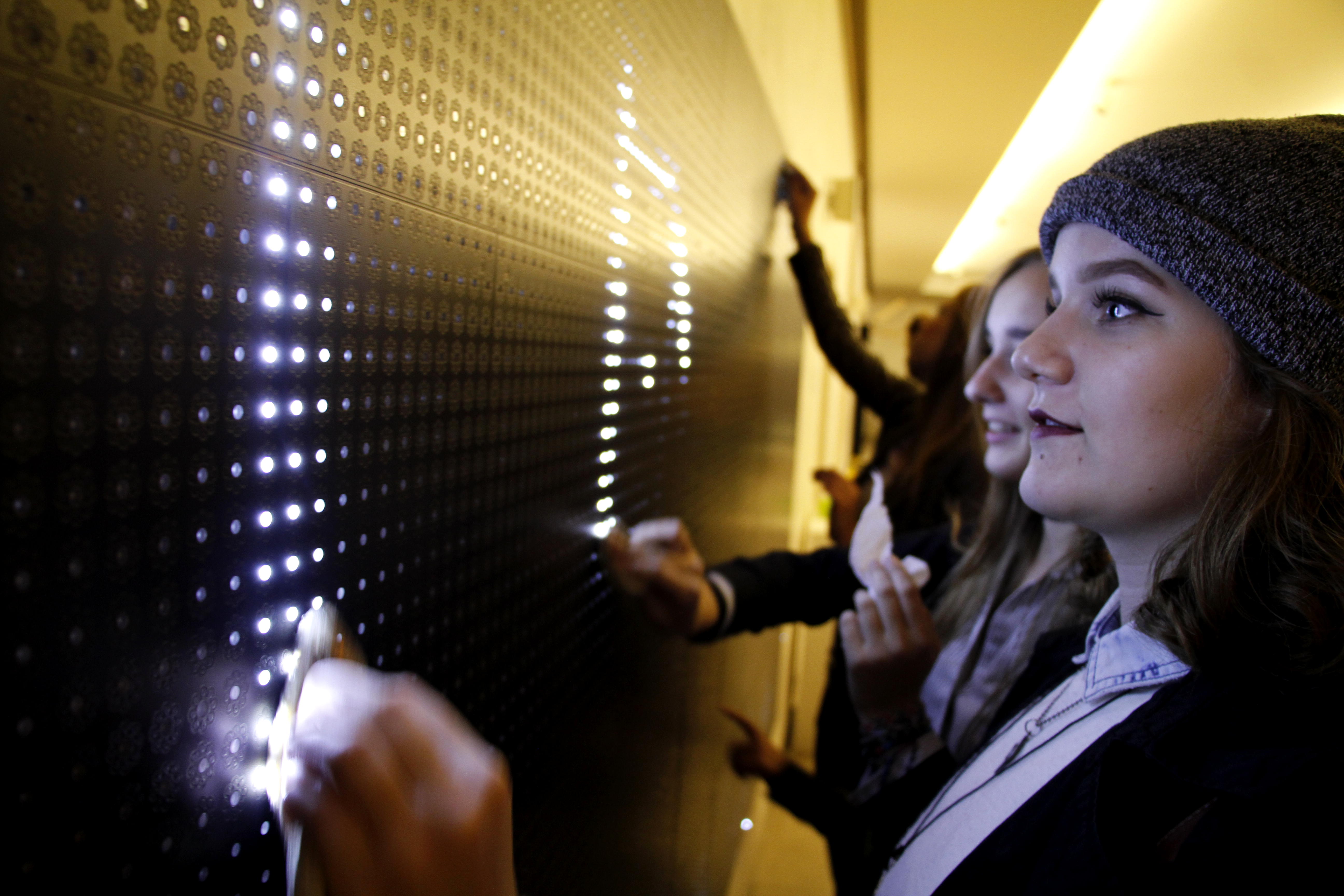 A: People visiting the exhibition will be able to experience street art interactively trough three pieces. The first one if waterlight graffiti where you paint with a moist sponge or a brush on a led filled surface, where the led bulbs react to water and light up. This is the next level of graffiti and protection from vandalism. They’ve invented a concrete that is filled with optical fibers that can react to the light of your smart phones. You don’t even need to use water, you can paint with your phone. They are going to implement that concrete in Poitier, a small town in France, in 2016. You’ll be able to do watertight graffiti there on certain spots in town.