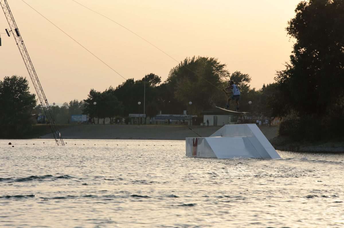 The guys from Wake park Jarun were at it for a week, each rail, bumper, ramp and box was to be cleaned, inspected, put together and lifted via a giant ramp into Jarun’s small lake. Finally, the ski lift, park’s most important element, was put in its place and the park was reopened after a long and hard winter for wakeboarders.