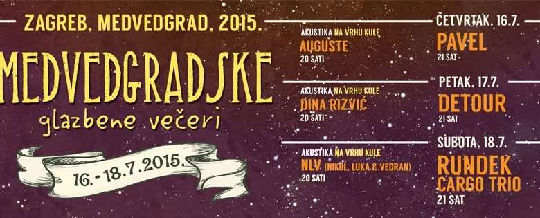 In July, when summer heat is melting the asphalt and people are desperately looking for a breeze of fresh air, Medvedgrad offers a series of concerts overlaid with a unique, archaic nuance, under a beautiful starry sky, lit by Zagreb night lights. At the well-preserved 13th-century old FortMedvegrad, from the 16th to 18th of July, many Croatian music groups will perform as a part of a three-day event Medvedgrad music nights.